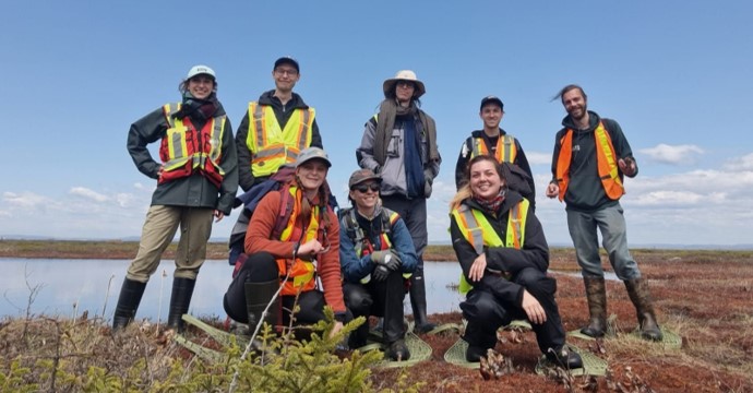 The team at the Pointe-Lebel experimental site (North Shore, Quebec) in May 2024, from left to right, top line then bottom line: Éléonor Bergeron-de Pani, Dan Aberg, Nicolas Duvivier, Olivier Gingras, Jérémi LaRue-Grondin, Catherine Roberge, Mélina Guêné-Nanchen, Takara Simpson Jenkins.